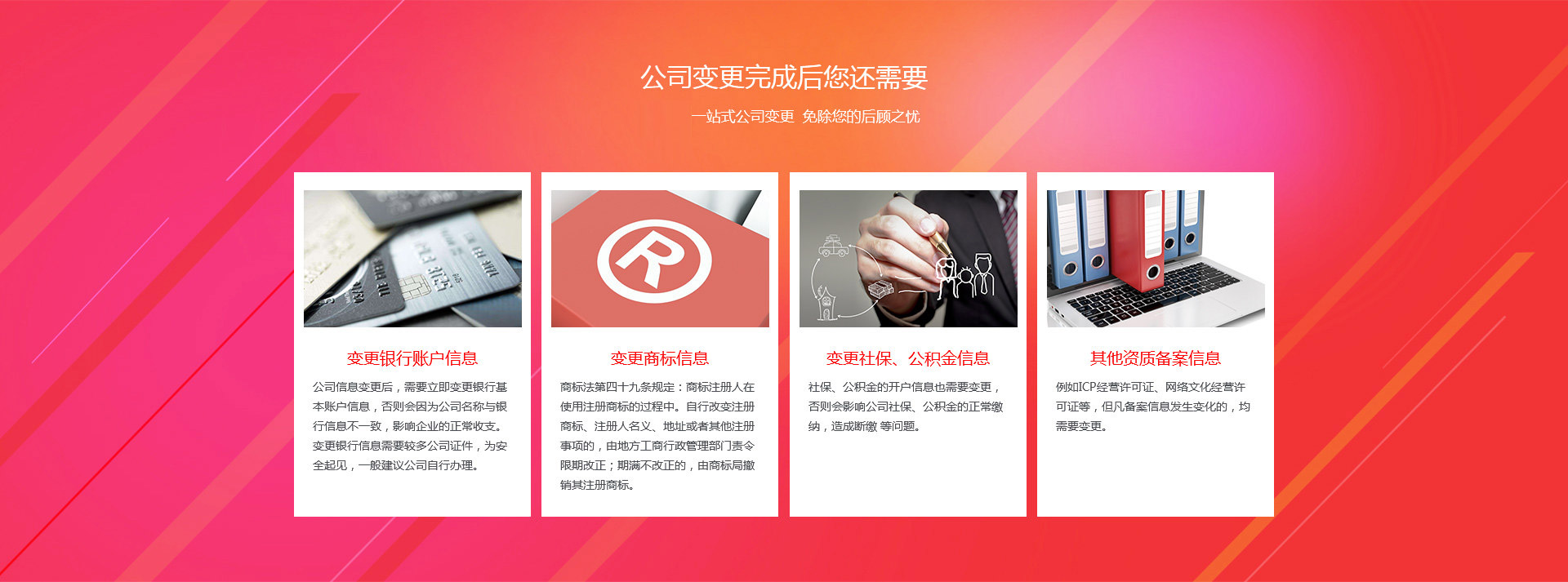 業(yè)務(wù)涉及:代辦各種營(yíng)業(yè)執(zhí)照(商貿(mào)型、服務(wù)型、科技型、實(shí)業(yè)型企業(yè)等)及會(huì)計(jì)記賬(建賬建制、稅收籌劃、納稅申報(bào)、整理舊帳、所得稅匯算等)等咨詢;我公司以誠(chéng)信為本,期待與您真誠(chéng)合作!